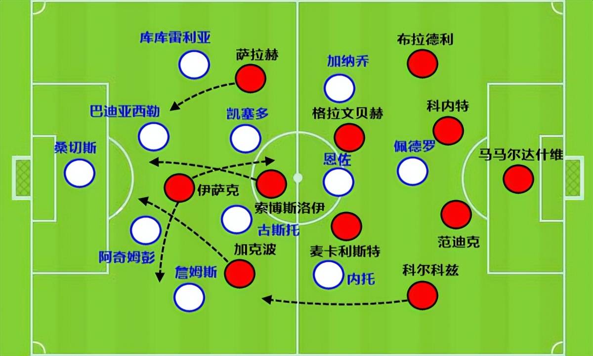 สิ่งที่โดดเด่นเป็นพิเศษคือการเปลี่ยนผ่านระหว่างเกมรุกและเกมรับอย่างรวดเร็ว ด้วยการจ่ายบอลยาวที่แม่นยำไปยังแนวรุก กองหน้าแสดงให้เห็นถึงความสามารถในการครองบอลที่ยอดเยี่ยมและสามารถเจาะเข้าสู่พื้นที่กลางของคู่แข่งได้ทันที