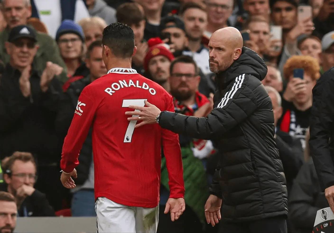 หลังจากย้ายไปร่วมทีมแมนเชสเตอร์ ยูไนเต็ด ทั้งสองคนได้มีช่วงเวลาแห่งความสุขร่วมกันในช่วงแรก อย่างไรก็ตาม หลังจากที่ผู้จัดการทีมชาวดัตช์ เอริก เทน ฮาก เข้ามารับตำแหน่ง สถานะของคริสเตียโน โรนัลโดในทีมก็เริ่มตกต่ำลงอย่างรวดเร็ว ในระหว่างการแข่งขันพรีเมียร์ลีกกับท็อตแนม ฮ็อตสเปอร์ โรนัลโดได้ปฏิเสธที่จะลงสนามเป็นตัวสำรองในช่วงท้ายเกมอย่างเปิดเผย และเดินกลับเข้าห้องแต่งตัวด้วยความโกรธ นี่ถือเป็นจุดเริ่มต้นของการแตกหักอย่างเต็มรูปแบบระหว่างเขากับเทน ฮากเหตุการณ์ที่ตามมาได้รับการบันทึกไว้อย่างละเอียด: โรนัลโดให้สัมภาษณ์พิเศษกับพิธีกรชาวอังกฤษ เพียร์ส มอร์แกน ซึ่งในระหว่างนั้นเขาได้ระบายความไม่พอใจและวิจารณ์หลายแง่มุมของช่วงเวลาที่เขาอยู่กับยูไนเต็ด สโมสรซึ่งได้ถึงขีดจำกัดแล้วจึงตัดสินใจยกเลิกสัญญากับเขาอย่างกะทันหัน สุดท้ายโรนัลโดได้ย้ายไปร่วมทีมอัล นาสร์ ในซาอุดีอาระเบียในฐานะนักเตะฟรีเอเยนต์
