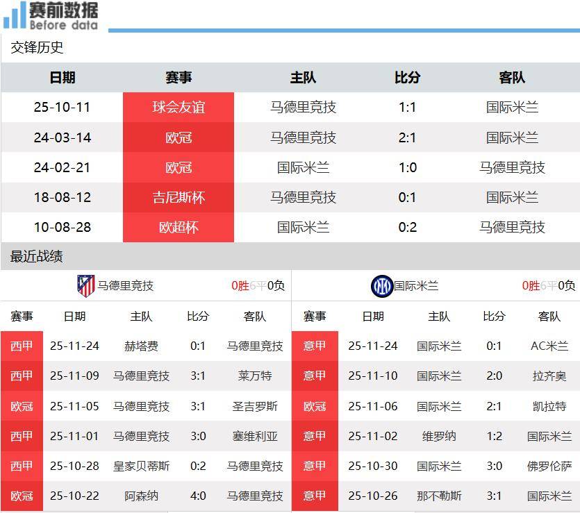 เวลา 04:00 น. ตามเวลาปักกิ่ง วันที่ 27 พฤศจิกายน การแข่งขันยูฟ่าแชมเปียนส์ลีก รอบแบ่งกลุ่ม นัดที่ 5 ได้มีการแข่งขันนัดสำคัญระหว่างแอตเลติโก มาดริด เปิดบ้านรับการมาเยือนของอินเตอร์ มิลาน