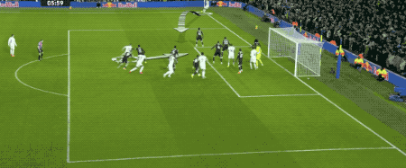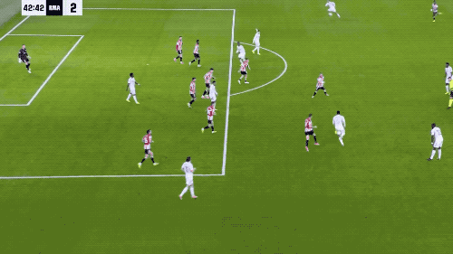 ในนาทีที่ 42 เรอัล มาดริด สร้างจังหวะการเล่นอันน่าตื่นตาตื่นใจด้วยการต่อบอลอย่างซับซ้อน อาร์โนลด์เปิดบอลจากเส้นหลัง เอ็มบัปเป้แตะต่อด้วยศีรษะ และกามาแว็งก้าโหม่งจ่อๆ เข้าประตูไป