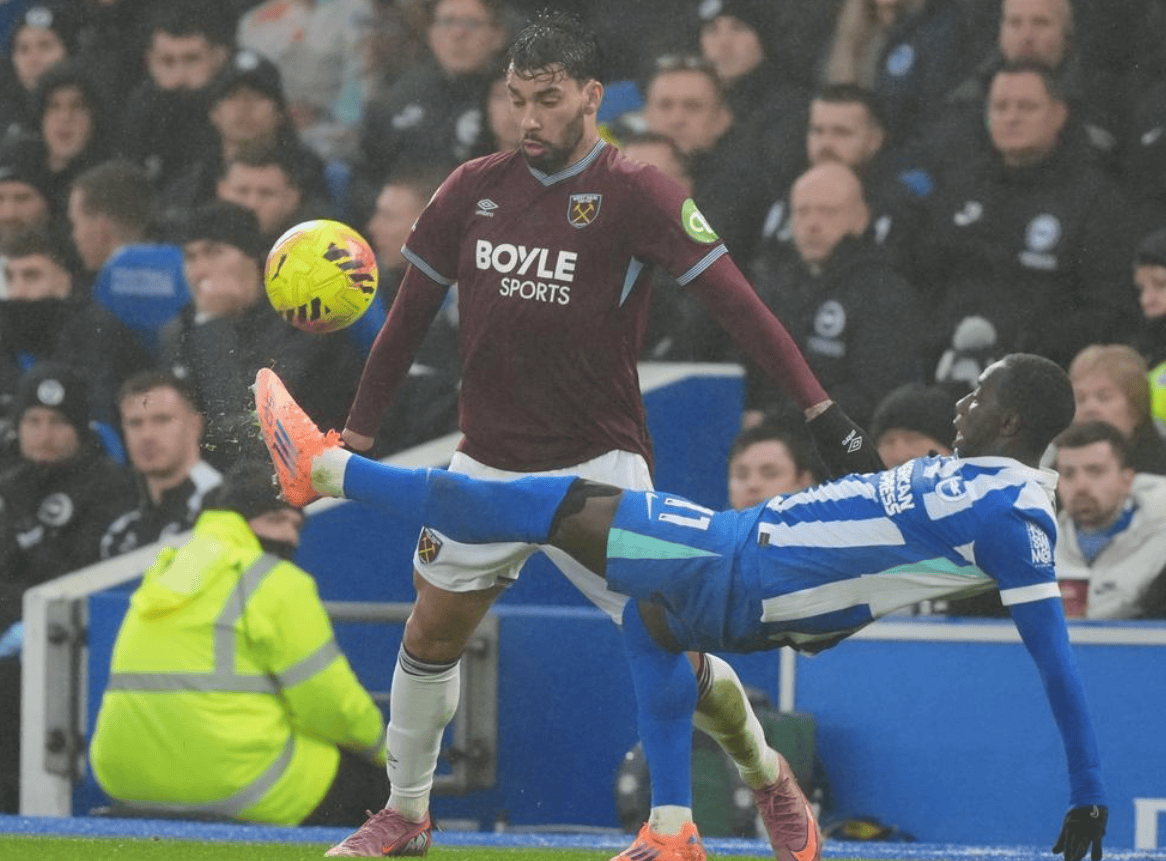 ในนาทีที่ 40 ปาเกต้าพยายามยิงไกล บอลพุ่งตรงไปยังมุมล่างขวา ผู้รักษาประตูพุ่งปัดออกไปได้ทัน ในอีกไม่กี่วินาทีต่อมา ซามูเอลสันทะลุเข้าไปทางด้านซ้ายของกรอบเขตโทษและยิงบอลไปทางเสาไกล บอลเฉียดเสาขวามือออกไปอย่างหวุดหวิดเมื่อจบครึ่งแรก สกอร์ยังคงอยู่ที่ 0-0! ไบรท์ตันครองบอลได้ 58% ในครึ่งแรก โดยยิงทั้งหมดเจ็ดครั้งแต่ไม่มีครั้งใดตรงกรอบเลย – คุณภาพของจังหวะยิงของพวกเขาแย่เกินไป เวสต์แฮม ยูไนเต็ด ยิงได้หกครั้ง ตรงกรอบหนึ่งครั้ง แต่ก็ยังไม่สามารถทำประตูได้เช่นกัน