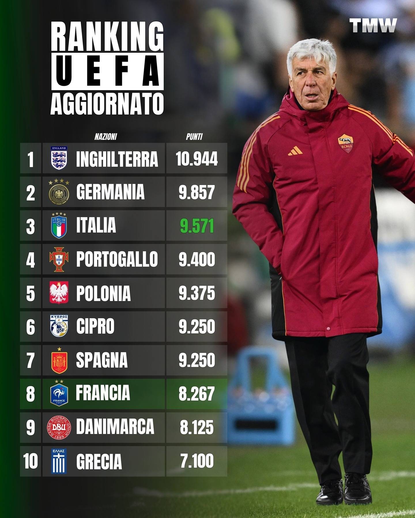 สุดท้ายนี้ ไม่สามารถมองข้ามพรีเมียร์ลีกได้ ซึ่งเป็นลีกฟุตบอลชั้นนำของโลก นำอันดับด้วยคะแนน 9.857 แม้ว่าผลงานในฤดูกาลนี้จะมีความผันผวนเล็กน้อย แต่ความมั่นคงของลีกยังคงน่าชื่นชมเมื่อเทียบกับทีมชั้นนำในลีกอื่นๆอย่างไรก็ตาม การแข่งขันในวงการฟุตบอลนั้นดุเดือดอย่างยิ่ง และทุกลีกต้องเผชิญกับแรงกดดันที่ต้องว่ายทวนกระแส—ความก้าวหน้าเป็นสิ่งจำเป็นเพื่อหลีกเลี่ยงการถดถอย โดยเฉพาะอย่างยิ่งกับเซเรีย อา ที่อิทธิพลของตระกูลอัเกลลียังคงส่งผลกระทบอย่างต่อเนื่อง คำถามที่ว่าเซเรีย อาจะถูกลีกอื่นในยุโรปแซงหน้าหรือไม่ ไม่ใช่เรื่องของ "ถ้า" อีกต่อไป แต่เป็น "เมื่อไหร่" ส่วนเรื่องที่โชเซ่ มูรินโญ่จะเป็นผู้ทำให้เซเรีย อาต้องล่มสลายในท้ายที่สุดหรือไม่นั้น เราคงต้องจับตาดูกันต่อไป
