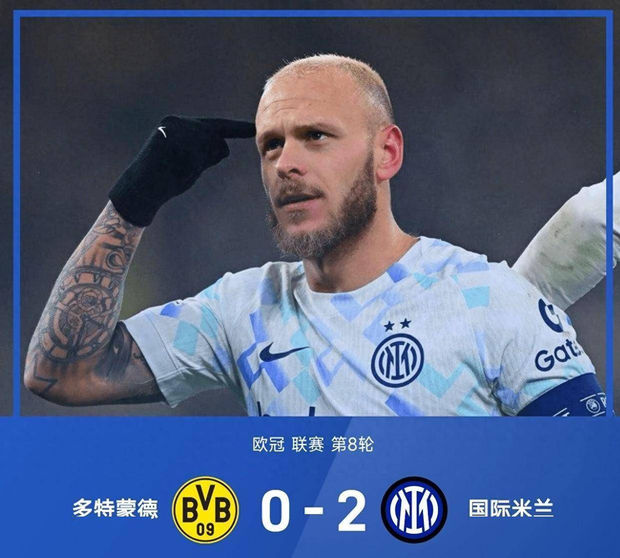 2-0! การแข่งขันตอนนี้ไม่มีข้อสงสัยอีกต่อไปแล้ว ดียูฟวิ่งอย่างบ้าคลั่งไปยังธงมุมเพื่อฉลอง ประตูนี้เป็นของขวัญที่สมบูรณ์แบบสำหรับการเปิดตัวในแชมเปียนส์ลีกของเขา ในขณะเดียวกัน ผู้เล่นของดอร์ทมุนด์ส่วนใหญ่ทรุดตัวลงบนพื้นหญ้า ดวงตาว่างเปล่า เสียงนกหวีดสุดท้ายดังขึ้น อินเตอร์ มิลาน คว้าชัยชนะ 2-0 ในเกมเยือนเหนือดอร์ทมุนด์ และยุติสถิติแพ้สามนัดติดต่อกันในรอบแบ่งกลุ่มแชมเปียนส์ลีกอย่างน่าอับอาย