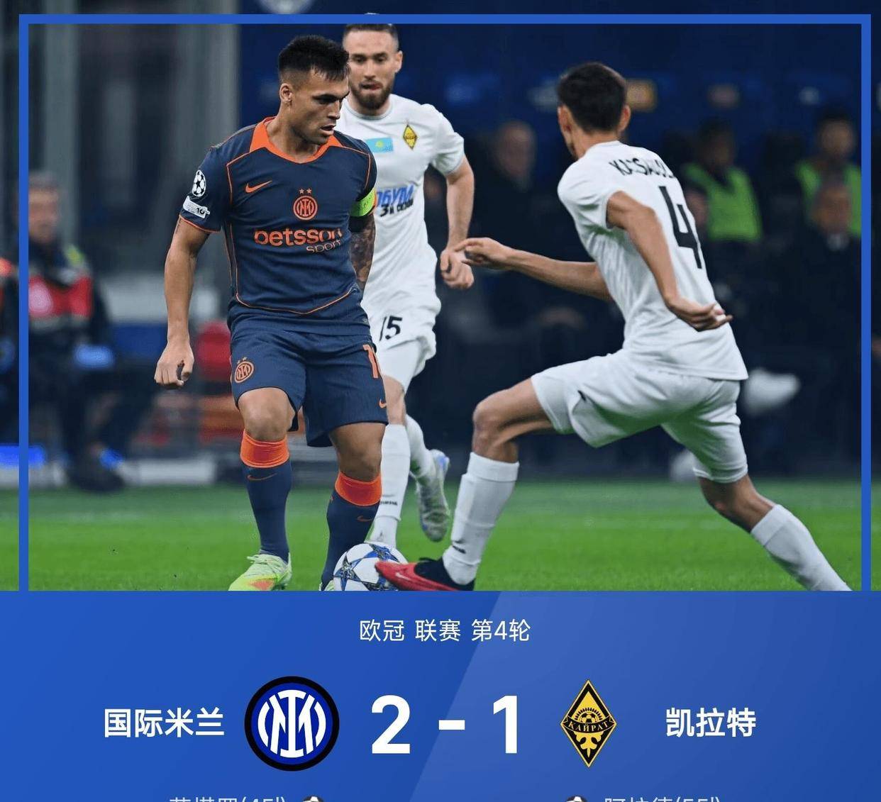 อินเตอร์ มิลาน แสดงความมั่นคงดั่งสุนัขแก่ คว้าชัยเหนือ ไคราต อัลมาตี 2-1 ลอว์ตาโร่ ทำประตูอีกครั้ง – หนุ่มน้อยคนนี้ทำประตูได้ในทุกนัดของแชมเปียนส์ลีกฤดูกาลนี้ ทำให้เขาอยู่ในระดับเดียวกับตำนานอย่าง เอโต้ และ อาเดรียโน่! แม้ว่าคู่แข่งจะตีเสมอได้ชั่วคราว แต่ประตูระดับโลกของ ออสการ์ ก็ทำให้ชัยชนะเป็นของอินเตอร์ อินเตอร์ มิลาน อยู่ในอันดับสามอย่างสบาย ๆ ด้วยชัยชนะติดต่อกันสี่นัด ทำให้พวกเขาเกือบจะการันตีการผ่านเข้ารอบน็อคเอาต์แล้ว