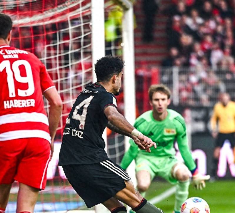 ในนาทีที่ 38 บาเยิร์นเริ่มการโจมตี สตานิซิชส่งบอลทะลุช่องไปเล็กน้อย เกือบจะหลุดออกหลัง แต่ดิอาซไม่ย่อท้อ แสดงเทคนิคที่ยอดเยี่ยมด้วยการสไลด์ตัวเข้าสกัดอย่างสวยงามใกล้เส้นข้างสนามเพื่อรักษาการครองบอลและเอาชนะคู่แข่งได้โดยไม่ลังเล เขาตีลูกบอลครั้งแรกจากมุมที่แทบจะเป็นไปไม่ได้ ส่งบอลพุ่งเข้าเสาขวาบนของตาข่าย ทำให้สกอร์เสมอกันสำหรับบาเยิร์น ประตูนี้ไม่เพียงแต่โดดเด่นจากการยิงอันทรงพลังของดิอาสจากมุมที่แทบจะเป็นไปไม่ได้ แต่ยังรวมถึงการไล่ล่าโอกาสโจมตีทุกครั้งอย่างไม่ลดละของเขา แม้ในขณะที่บอลเกือบจะออกนอกสนาม ทุกรายละเอียด ตั้งแต่การฟื้นตัวในนาทีสุดท้ายจนถึงการยิงสุดท้าย ล้วนน่าประทับใจอย่างยิ่ง