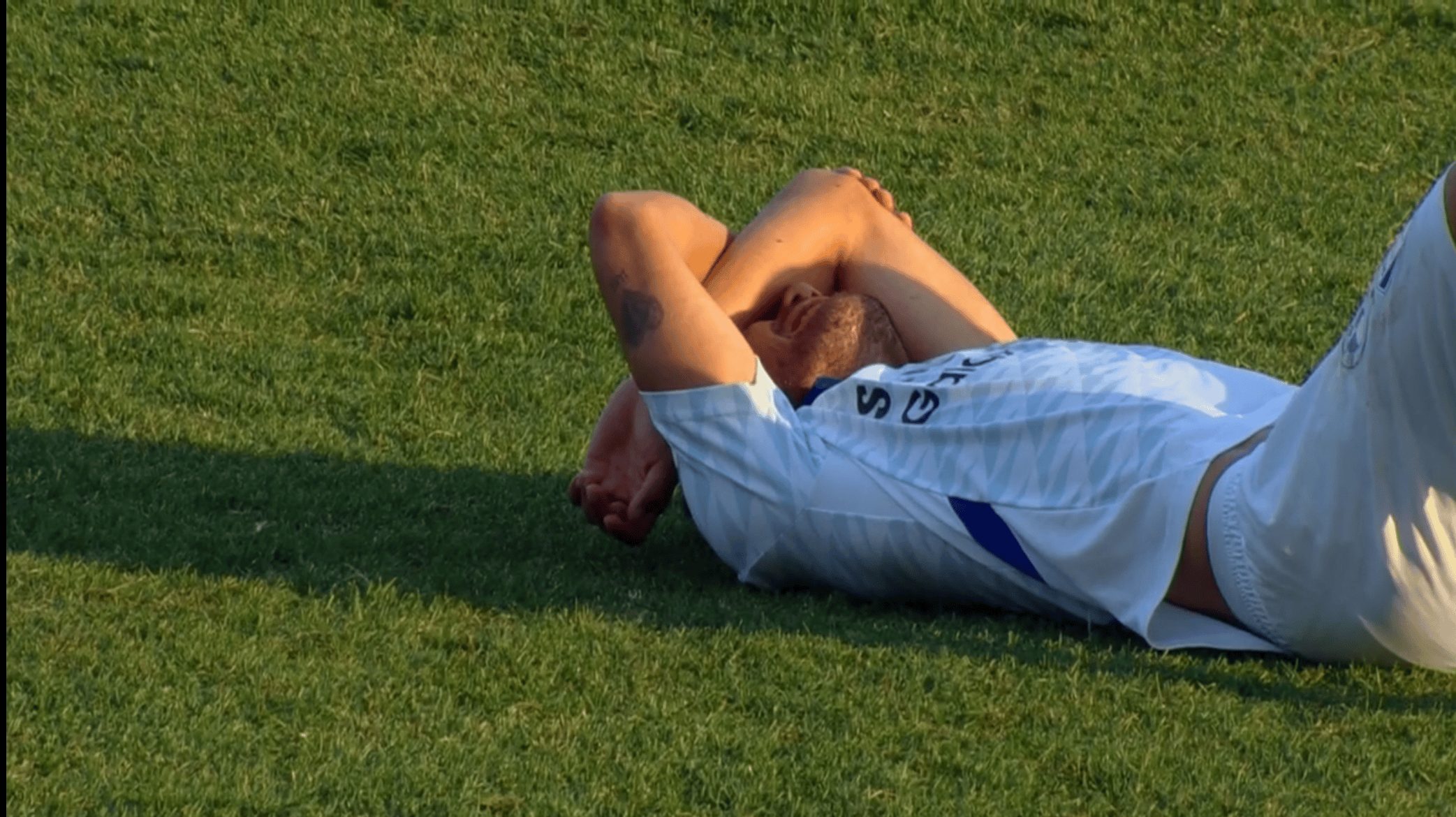 ก่อนหมดครึ่งแรกไม่นาน พวกเขาต้องเจอกับปัญหาอีกครั้ง เมื่อบอลเปิดจากฝั่งขวาไปถึง ฮง วอนจิน ในแดนกลาง แต่ อิตาโล ของเจจู เข้าสกัดจนล้มลงอย่างหนัก อย่างน่าทึ่ง อิตาโล เก็บลูกบอลที่หลุดออกมาได้ ก่อนจะพาบอลขึ้นหน้าและยิงเข้าประตูไป VAR ยืนยันว่าประตูยังคงอยู่เนื่องจากไม่มีการทำฟาวล์เกิดขึ้น ทำให้ทีมโค้ชของซูวอนโกรธมาก ผู้จัดการทีม บยอน ซองฮวาน ถึงกับตะโกนด่าผู้ตัดสินในช่วงพักครึ่งเวลา, เชจู นำอยู่ 2-0, ทำให้ได้เปรียบด้วยสกอร์รวม 3-0 และทำให้ความหวังในการรอดพ้นจากการตกชั้นกลับมาอีกครั้ง