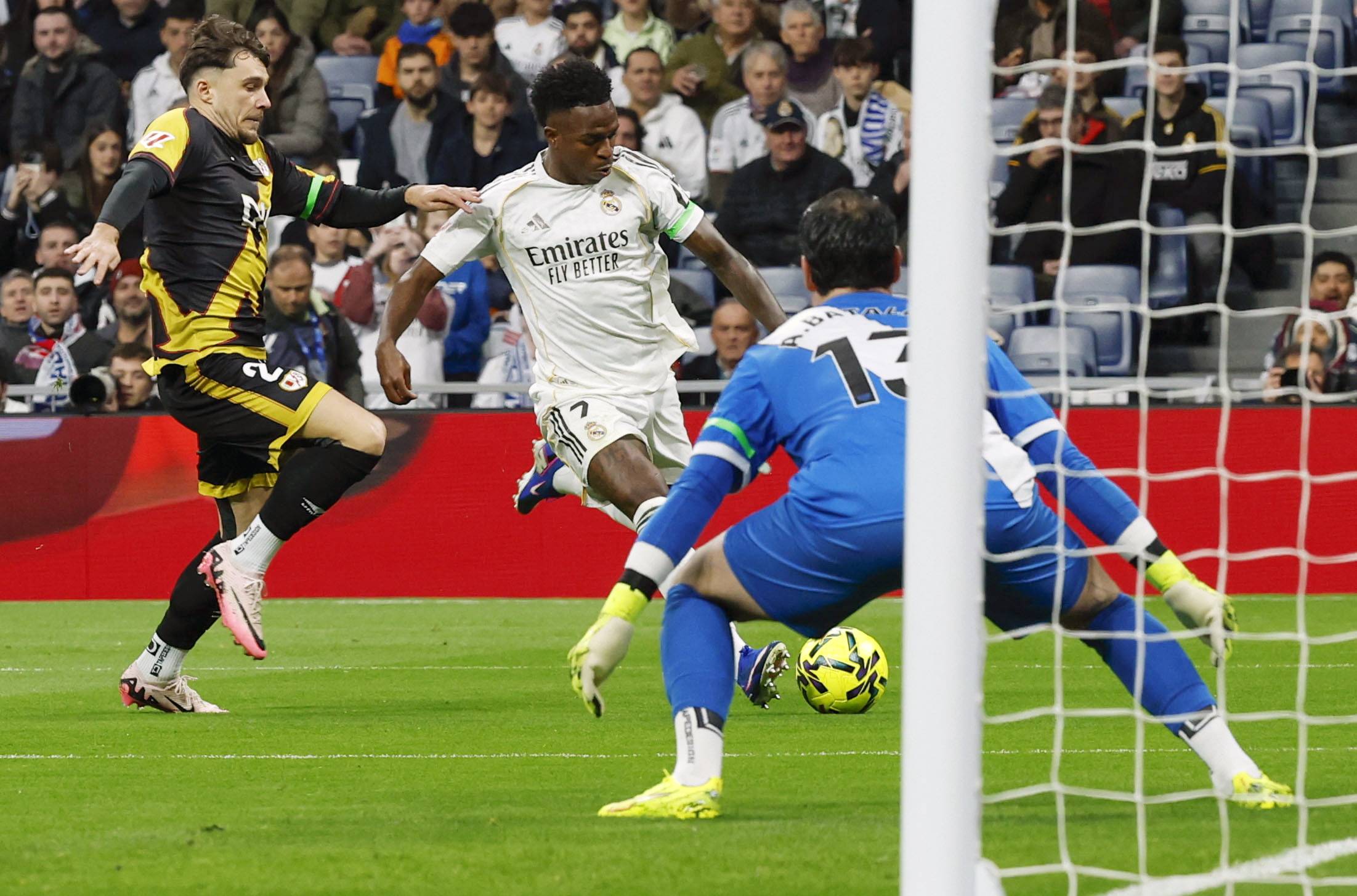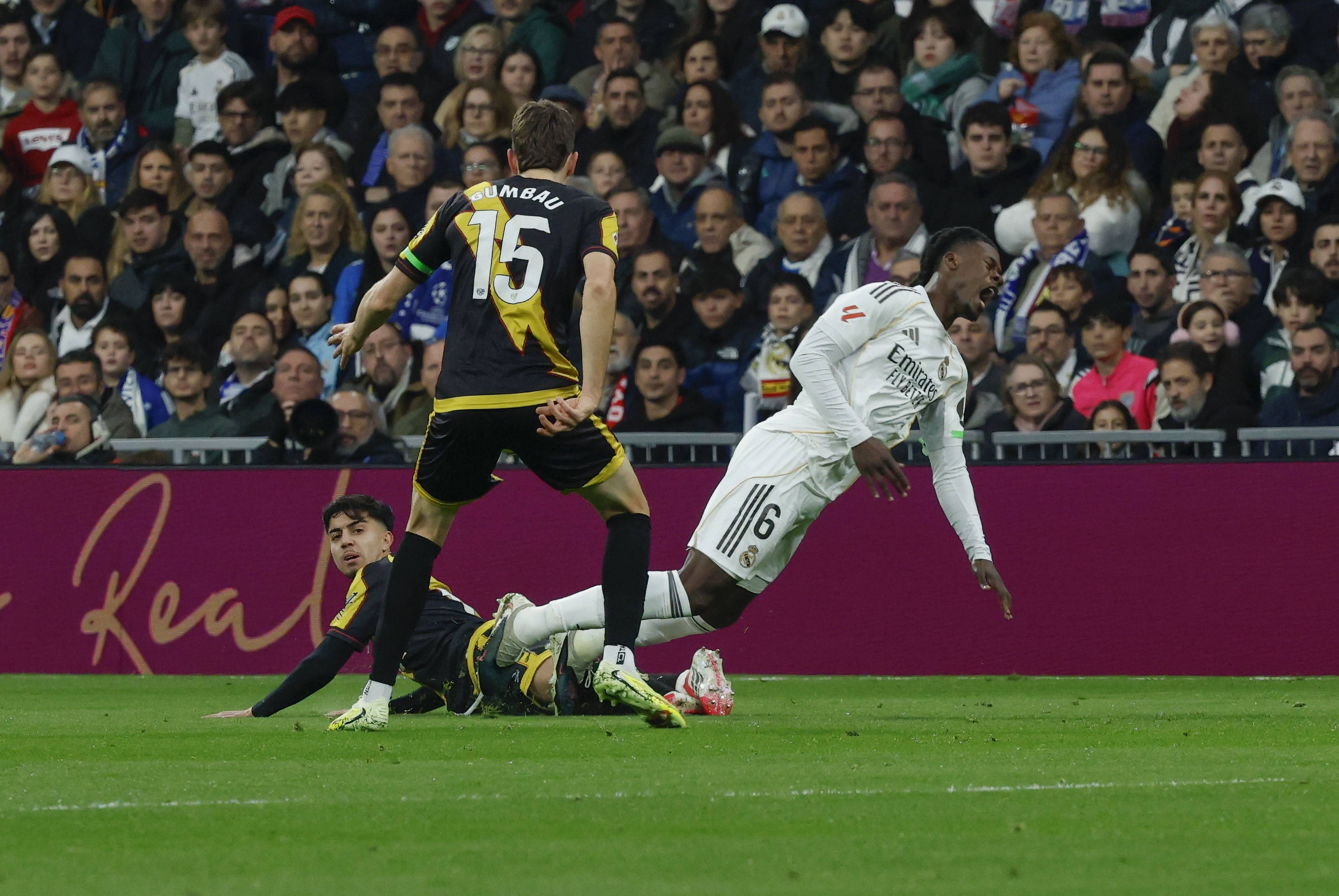 เมื่อวันที่ 1 กุมภาพันธ์ ฮุยเซนของเรอัล มาดริด (ด้านหลัง) เข้าปะทะกับปาร์ราโซของราโย บาเยกาโน่เพื่อแย่งบอล ซีเอ็นเอ/อีพีเอ
