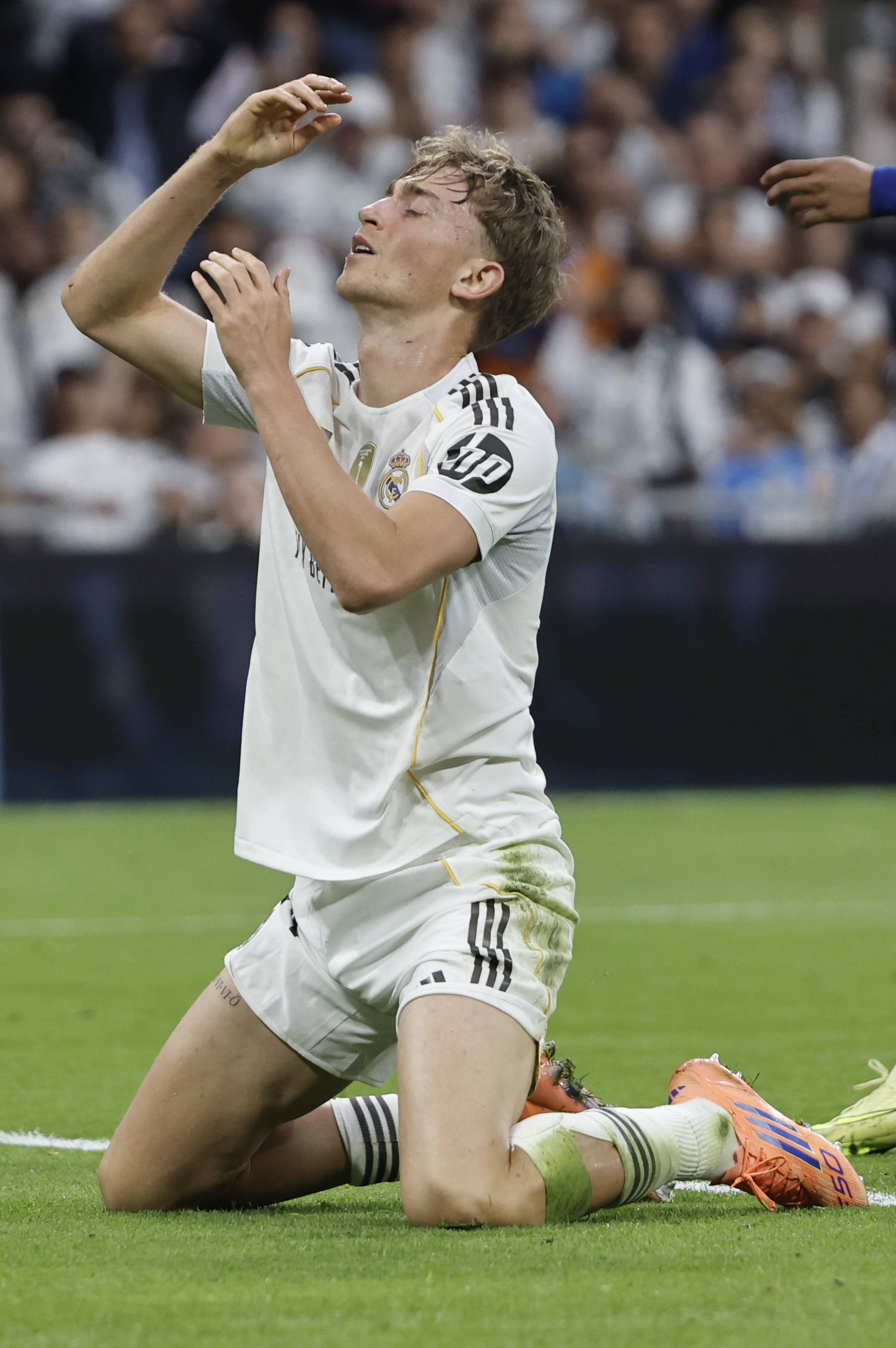 เมื่อวันที่ 26 ตุลาคม วินิซิอุสของเรอัล มาดริด (ขวา) เข้าแย่งบอลกับเดอ ยองของบาร์เซโลนา ซีเอ็นเอ/อีพีเอ