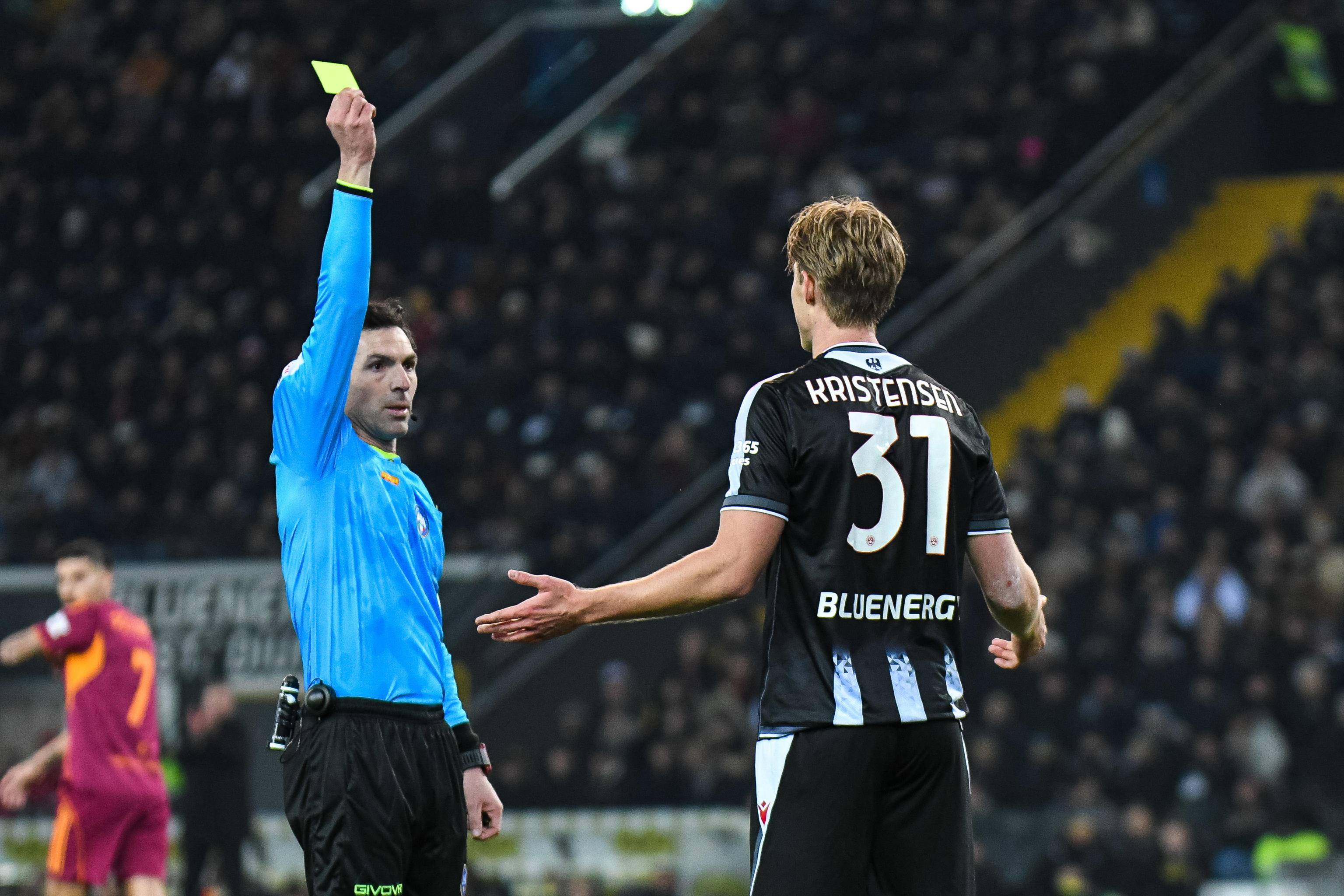 เมื่อวันที่ 2 กุมภาพันธ์ คริสเตนเซ่น ผู้เล่นของอูดิเนเซ่ ถูกผู้ตัดสินแจกใบเหลือง ซินหัว/EPA