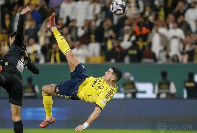 ช่วงเวลาที่โดดเด่นที่สุดมาถึงในช่วงทดเวลาบาดเจ็บ ในนาทีที่ 96 นาวาฟเปิดบอลโค้งจากปีกขวาเข้าเขตโทษ คริสเตียโน่ โรนัลโด้ ประเมินวิถีบอลได้อย่างสมบูรณ์แบบ กระโดดขึ้นกลางอากาศและบิดลำตัวเป็นเส้นโค้งที่ไร้ที่ติ ก่อนจะซัดลูกจักรยานอากาศสุดมหัศจรรย์ส่งบอลพุ่งเสียบมุมบนของประตูอย่างสวยงามการเคลื่อนไหวนั้นราบรื่นไร้ที่ติ ผสมผสานพลังอันมหาศาลเข้ากับความงดงามทางศิลปะได้อย่างลงตัว สร้างความทรงจำอันน่าตื่นตาตื่นใจจากการยิงวอลเลย์สุดสวยในศึกยูฟ่า แชมเปียนส์ลีก รอบน็อคเอาต์ปี 2018 กับยูเวนตุส เมื่อเจ็ดปีก่อน แม้ปัจจุบันจะอายุ 40 ปีแล้ว โรนัลโดก็ยังคงสร้างประตูอันเป็นเอกลักษณ์และระดับโลกเช่นนี้ได้อย่างต่อเนื่อง—การหวนคืนสู่ฟอร์มสุดยอดอย่างแท้จริง
