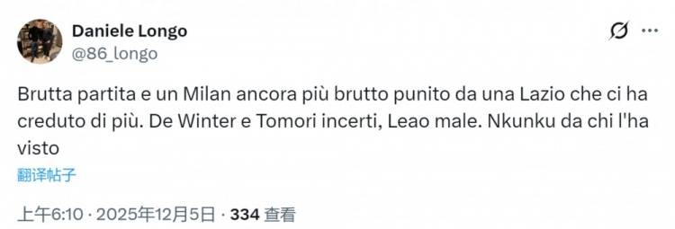 อัลเลกรีแสดงความเสียใจอย่างสุดซึ้งในการให้สัมภาษณ์หลังการแข่งขัน หลังจากที่ลาซิโอเอาชนะเอซี มิลาน 1-0 ในรอบสามของโคปปา อิตาเลีย เมื่อสะท้อนถึงการแข่งขัน เขากล่าวว่าทีมที่ชนะย่อมได้เปรียบเสมอ มันเป็นการแข่งขันที่สูสีมาก ซึ่งทีมที่ทำประตูแรกได้ก็จะได้เปรียบเราควรป้องกันลูกเตะมุมได้ดีกว่านี้ แม้ว่าเอซี มิลานจะเล่นได้ดีโดยรวม แต่การจ่ายบอลของเราควรจะแม่นยำกว่านี้เพื่อใช้ช่องว่างในแนวรับของพวกเขาให้มากขึ้น จาชารีกลับมาลงสนามอีกครั้งหลังจากหายไปนานและทำผลงานได้อย่างน่าชื่นชม อย่างไรก็ตาม การที่เอซี มิลานตกรอบโคปปา อิตาเลียเป็นเรื่องที่น่าเสียดาย เพราะเราหวังว่าจะผ่านเข้ารอบต่อไปได้ อย่างไรก็ตาม เราต้องลืมความพ่ายแพ้ครั้งนี้ไว้ข้างหลังและมุ่งความสนใจไปที่การเตรียมตัวสำหรับการแข่งขันลีกนัดต่อไปกับโตริโน่