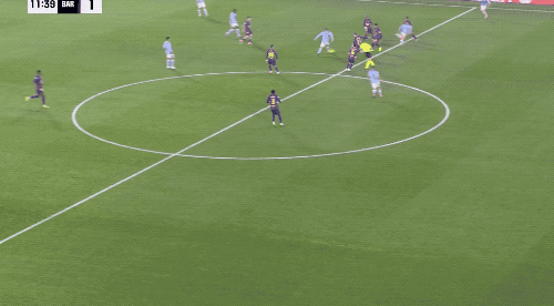 ในนาทีที่ 11 กับดักล้ำหน้าของบาร์เซโลนาพิสูจน์ให้เห็นอีกครั้งว่าไร้ประสิทธิภาพเมื่อบัลเดออยู่ข้างหลัง เซลต้า บีโก้เปิดเกมโต้กลับอย่างรวดเร็ว โดยเซร์คิโอ การ์เร่ทะลุผ่านเข้าไปยิงประตูตีเสมอได้ทันที