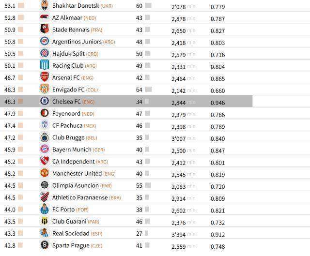 อันดับที่สี่คือ อาแจ็กซ์ จากเอเรดิวิซี อันดับที่ห้าคือ โบคา จูเนียร์ส จากอาร์เจนตินา อันดับที่หกคือ สปอร์ติ้ง ซีพี จากโปรตุเกส อันดับที่เจ็ดคือ ดินาโม ซาเกร็บ จากโครเอเชีย อันดับที่แปดคือ เดเฟนซอร์ สปอร์ติง จากอุรุกวัย อันดับที่เก้าคือ เรอัล มาดริด จากลาลีกา และอันดับที่สิบคือ ซาน โลเรนโซ จากอาร์เจนตินาแม้ว่าสโมสรฟุตบอลฝรั่งเศสจะมีชื่อเสียงยาวนานในด้านการพัฒนาเยาวชน แต่ปารีส แซงต์-แชร์กแมง เป็นสโมสรจากฝรั่งเศสที่มีอันดับสูงสุดในรายงานนี้ โดยอยู่ในอันดับที่ 19 ขณะที่ลียงอยู่ในอันดับที่ 34 และแรนส์อยู่ในอันดับที่ 44