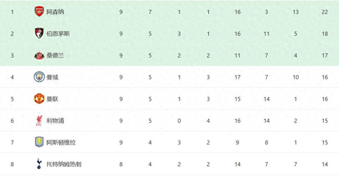 หลังจากการแข่งขันรอบที่เก้าสิ้นสุดลง ตารางคะแนนพรีเมียร์ลีกมีการเปลี่ยนแปลงอย่างมาก