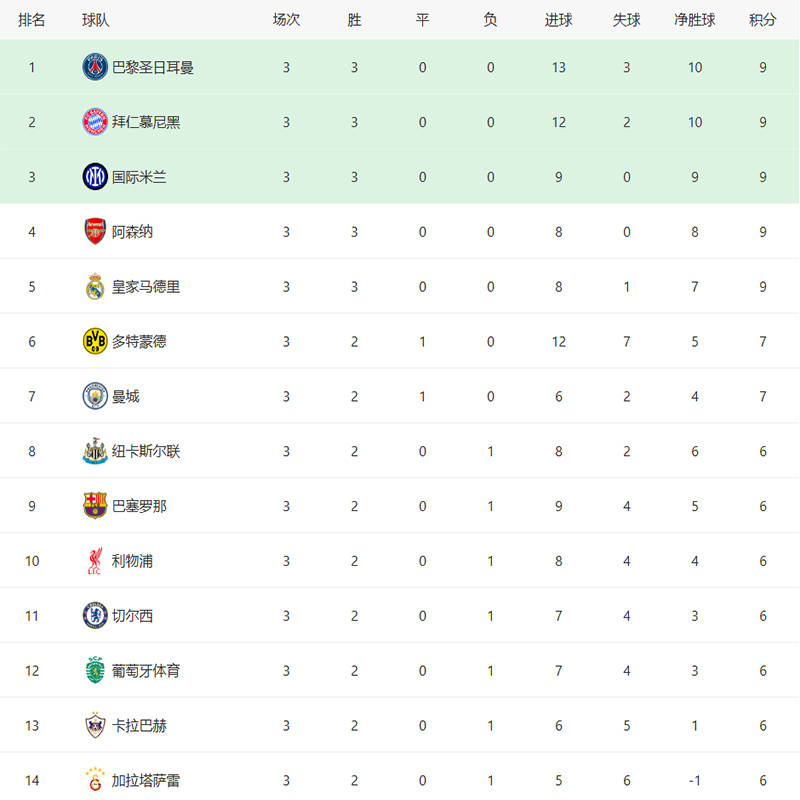 ในบรรดาทีมแปดอันดับแรกของฤดูกาลที่แล้ว ลิเวอร์พูลและแอสตัน วิลล่าต่างก็มีสถิติที่สมบูรณ์แบบหลังจากสามรอบการแข่งขัน โดยครองตำแหน่งจ่าฝูงด้วยเก้าคะแนน อาร์เซนอล, อินเตอร์ มิลาน และไบเออร์ เลเวอร์คูเซ่น ต่างก็มีสองชนะและหนึ่งเสมอ รวมเป็นเจ็ดคะแนน ขณะที่บาร์เซโลนาและลีลล์มีสองชนะและหนึ่งแพ้ รวมเป็นหกคะแนนที่น่าสังเกตที่สุดคือ แอตเลติโก มาดริด ชนะเพียงนัดเดียวในสามนัดแรก แต่สามารถคว้าชัยชนะติดต่อกันห้าครั้งเพื่อจบฤดูกาลในอันดับที่แปดได้ ซึ่งแสดงให้เห็นว่า นอกเหนือจากแอตเลติโกแล้ว ทีมอื่น ๆ ในอันดับแปดทีมแรกมีคะแนนอย่างน้อยหกคะแนนในรอบที่สาม ซึ่งบ่งชี้ว่ามีความเป็นไปได้สูงที่จะได้คะแนนถึง 16 คะแนนในฤดูกาลนี้ ดังนั้น เราสามารถคาดคะเนได้ในเบื้องต้นว่า ทีมที่มีโอกาสจบฤดูกาลในอันดับแปดทีมแรกของฤดูกาลนี้ควรมีคะแนนอย่างน้อยหกคะแนนแล้ว ณ ตอนนี้ เราจะมาตรวจสอบโอกาสการผ่านเข้ารอบของทีมที่มีคะแนนหกคะแนนหรือมากกว่าในขณะนี้