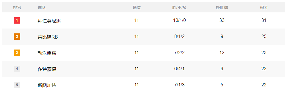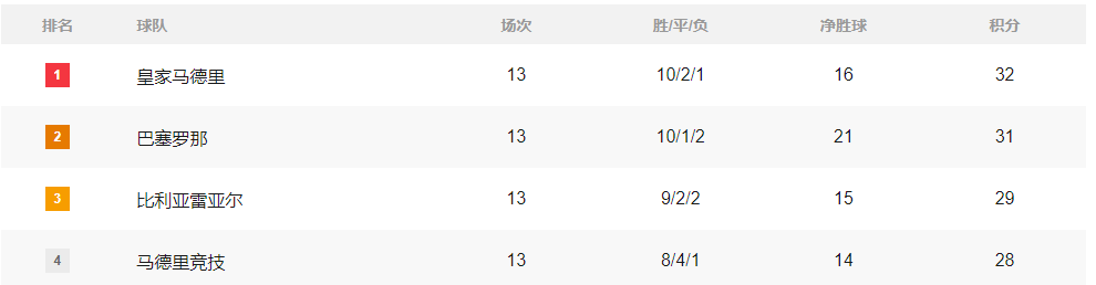 เมื่อวันที่ 24 พฤศจิกายน เวลาปักกิ่ง ลีกฟุตบอลชั้นนำของยุโรปทั้งห้าลีกได้แข่งขันกันอีกครั้ง โดยอันดับปัจจุบันเป็นดังนี้: