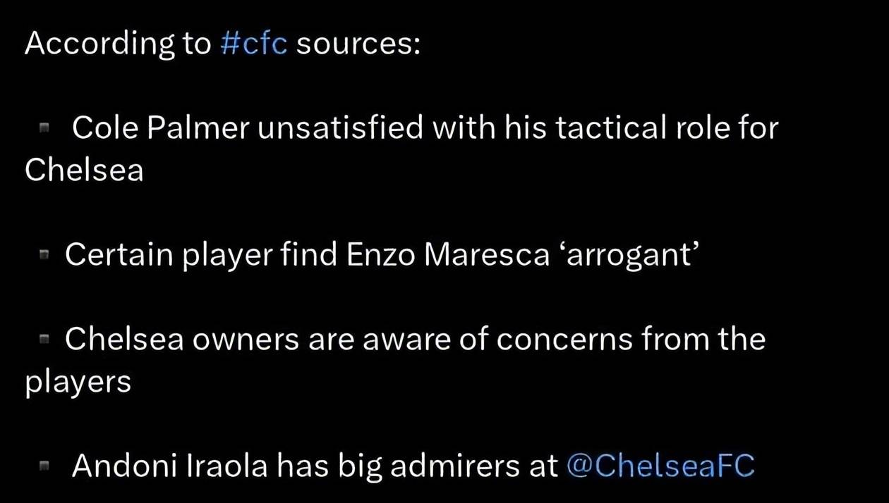 แต่ด้วยต้องรับมือกับสามแนวหน้าในฤดูกาลนี้ การบริหารจัดการที่ละเอียดรอบคอบยิ่งขึ้นจึงเป็นสิ่งจำเป็น และมาเรสกาเองก็พบว่าตัวเองต้องแบกรับภาระมากเกินไปอยู่บ้างในการแข่งขันล่าสุด เชลซีประสบปัญหาในการหาสมดุลที่เหมาะสมในทีมอย่างต่อเนื่อง ทำให้การตกต่ำของฟอร์มไม่น่าแปลกใจเลย ดูเหมือนว่าเขายังขาดความละเอียดอ่อนที่จำเป็นในการควบคุมสโมสรระดับท็อปอย่างแท้จริง จึงไม่น่าแปลกใจเลยที่เชลซีจะพิจารณาการเปลี่ยนแปลงผู้จัดการทีม รายงานระบุว่าสโมสรได้ตัดสินใจแล้ว: หากผลงานของมาเรสกาไม่ดีขึ้น เขาจะถูกปลดออกจากตำแหน่ง ผู้สมัครที่มีโอกาสมากที่สุดที่จะมาแทนที่เขาคือผู้จัดการทีมบอร์นมัธ อิรูรา