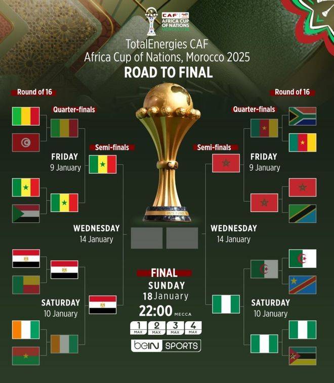 การแข่งขันรอบรองชนะเลิศได้รับการยืนยันแล้ว: เซเนกัล พบกับ อียิปต์ และ ไนจีเรีย พบกับ โมร็อกโก นี่จะเป็นการพบกันที่น่าจับตามองทั้งสองคู่ อียิปต์ ทีมที่ประสบความสำเร็จมากที่สุดในทัวร์นาเมนต์นี้ด้วยแชมป์ 7 สมัย จะพบกับ เซเนกัล แชมป์ 3 สมัย ลิเวอร์พูล สองดาวเด่นในตำนาน โมฮาเหม็ด ซาลาห์ และ ซาดิโอ มาเน่ จะได้เผชิญหน้ากันอีกครั้งในเวทีระดับนานาชาติ