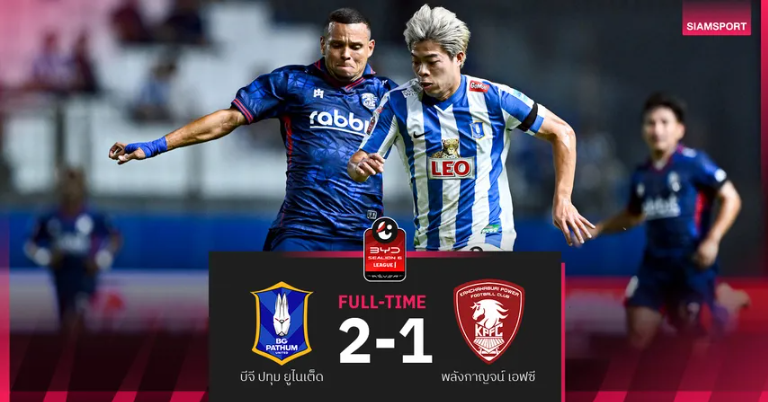 บีจี ปทุม เฉือน พลังกาญจน์ เข้าวิน 2-1 แซงรั้งที่3 ศึกBYD SEALION 6 ลีกหนึ่ง
